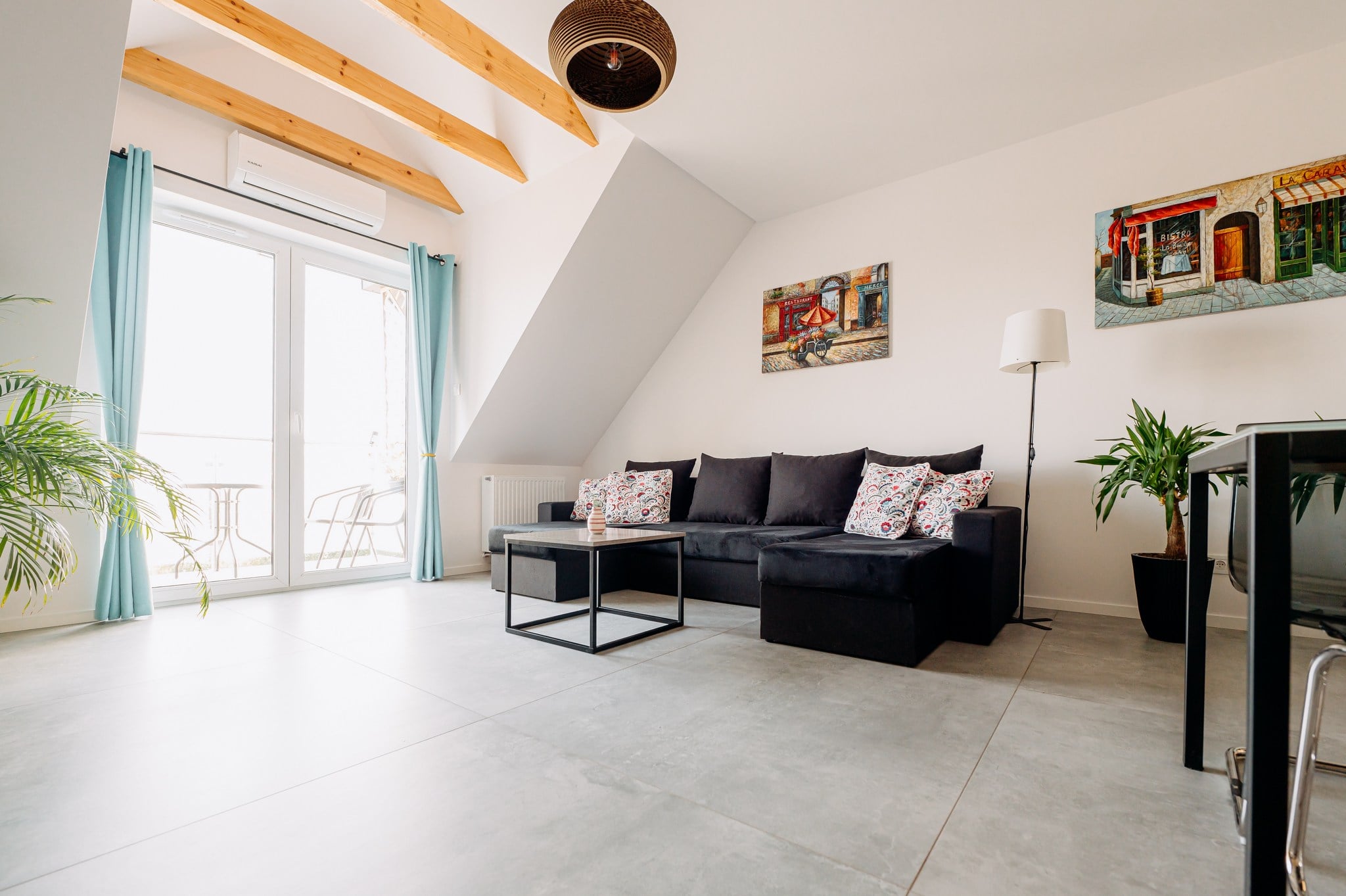 Przepiękny widok na Bramę Opatowską oraz Stare Miasto oraz całą Wyżynę Sandomierską z rzeką Wisłą. Apartament Widokowy 1 to przestronne ponad 60 m mieszkanie z balkonem. Południowa ekspozycja zapewnia dużo światła a w okresie letnim, dzięki klimatyzacji można dowolnie regulować temperaturę wewnątrz. W oddzielnej sypialni znajduje się łóżko małżeńskie oraz rozkładana kanapa. W salonie połączonym z aneksem kuchennym do dyspozycji duża rozkładana sofa. Apartament oferuje takie udogodnienia jak ekspres do kawy oraz dostęp do telewizji Netflix. Przeznaczony dla maks. 6 osób.